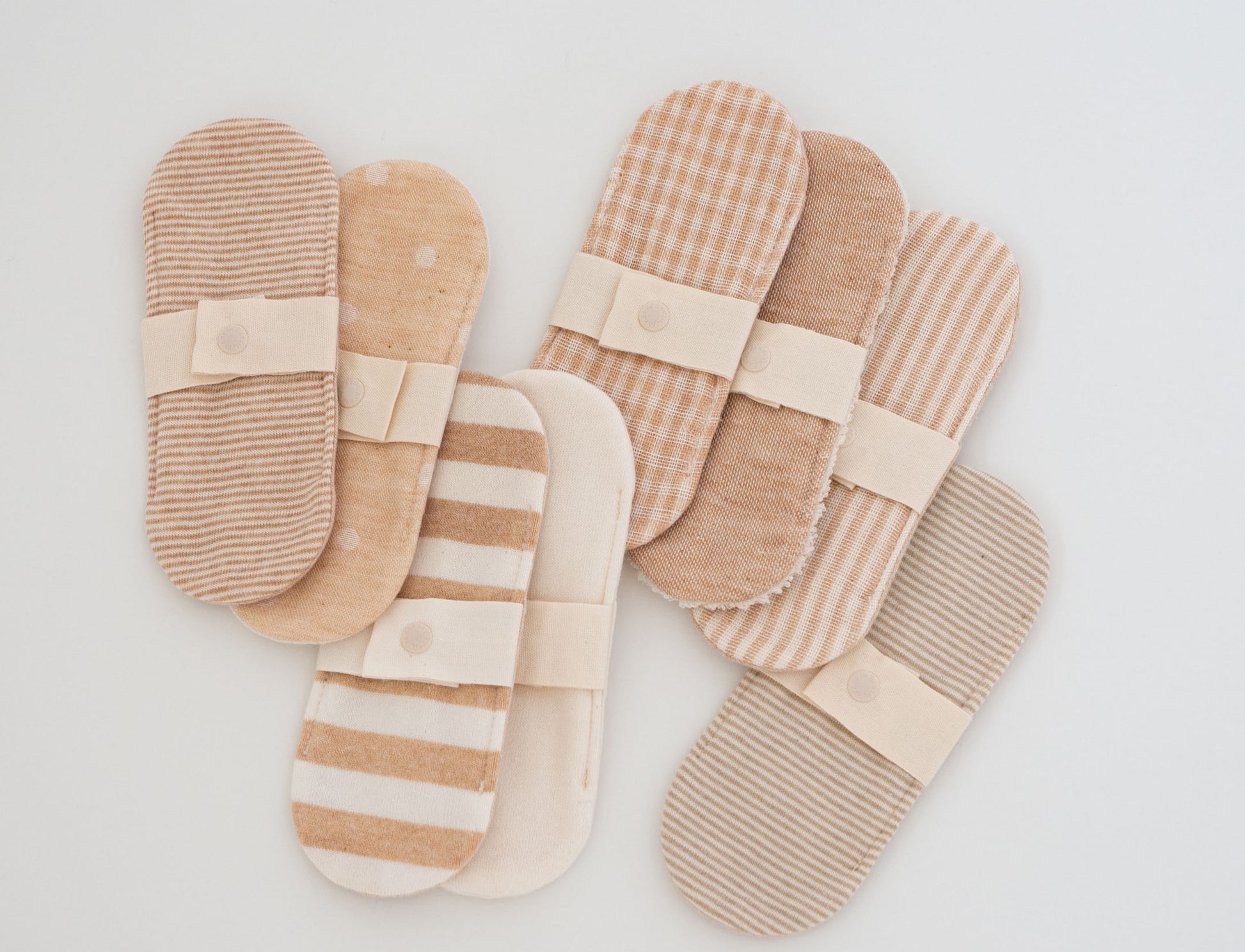 Little Cloth Napkin can be washed and used many times Compact cloth sanitary napkin for "countermeasure of discharge" and "countermeasure of coldness. The material, sewing threads, and ribbon tape have all been carefully selected. All materials, sewing threads, and ribbon tapes are made of pure organic cotton, which is gentle to the environment and skin, and ribbon tape are all made of 100% organic cotton, which is gentle to the environment and your skin. 100% organic cotton is used for all the materials, sewing threads, and ribbon tapes, making them very soft and durable. By using the little cloth sanitary napkin, the delicate area will be The Little Cloth Napkin allows you to spend your daily life in comfort, without any itchiness or dampness.