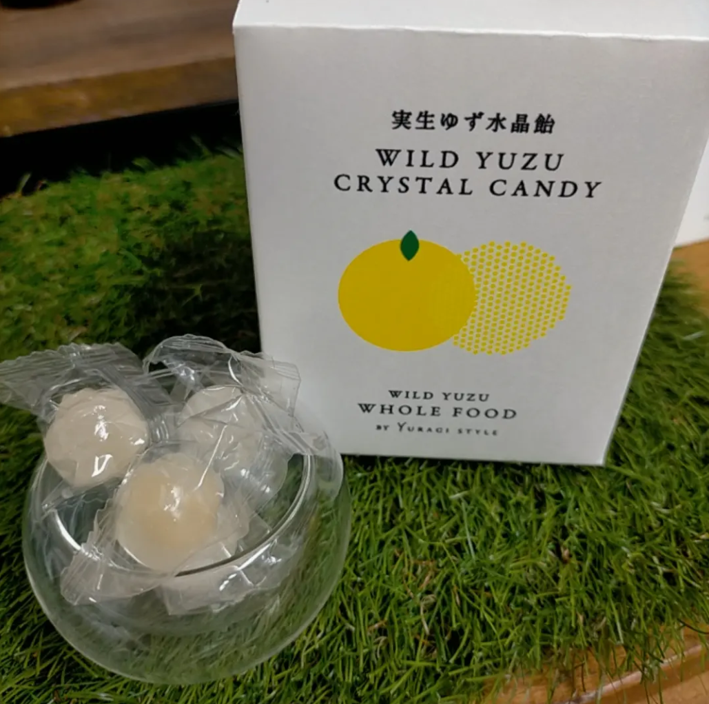 We used "Seedling Yuzu" from the Minoh-Todoromi area. Unlike ordinary grafted yuzu, the yuzu is grown from a seed and finally bears fruit 18 years later. The whole yuzu is processed into a whole food using a special process, and the "Seed Yuzu Powder" is used to trap it in the clear candy. As you roll the candy around in your mouth, the taste of the whole Yuzu fruit fills your mouth, giving you a two-fold enjoyment with one candy. Please try the aroma and sweetness of the "Jitsu Yuzu," which has inherited pure genes from over 1,000 years deep in the mountains of Japan.