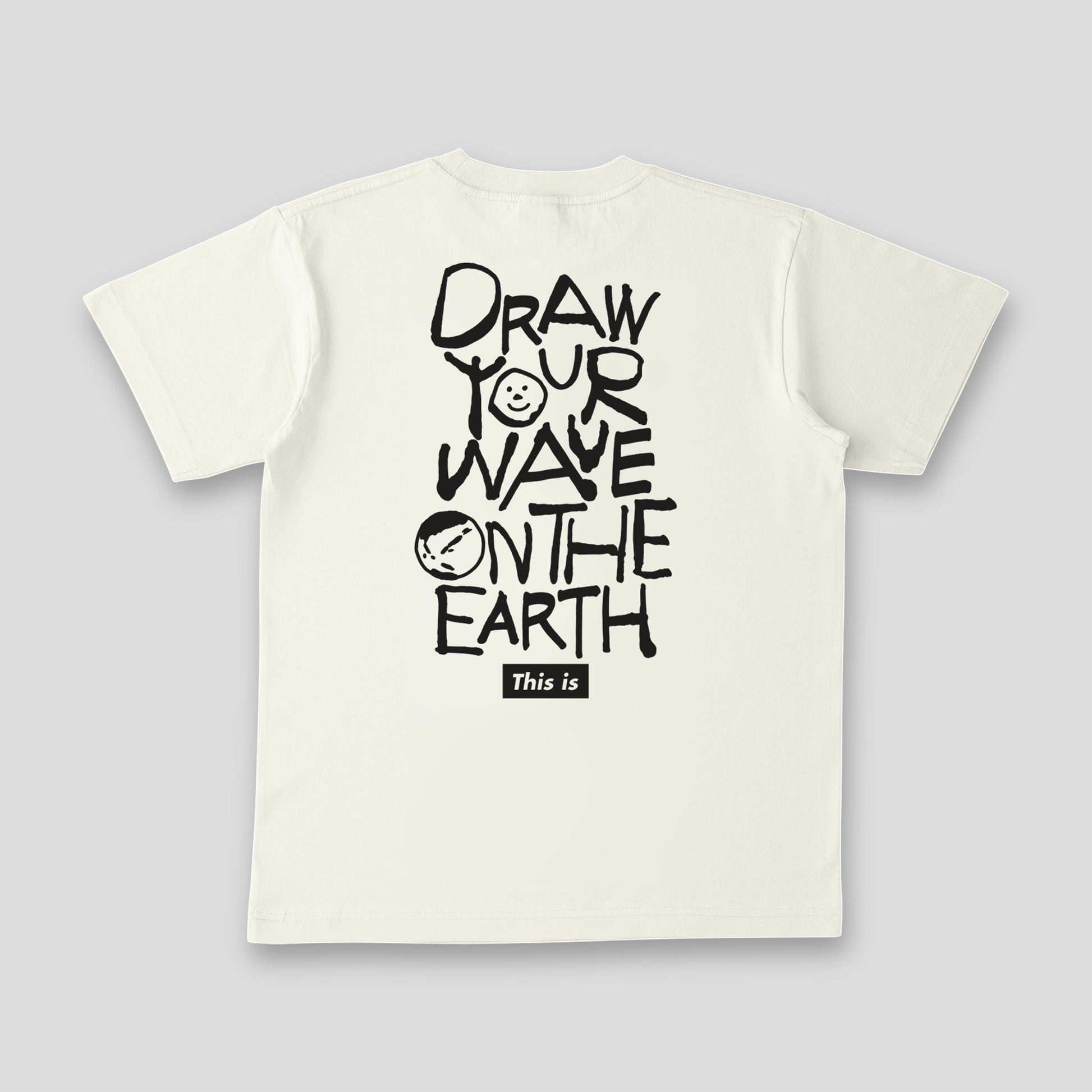 Everything on the Earth is Free & Art New values were created through the encounter and interaction between "irodori," a welfare workshop in Tamagawa, Setagaya-ku, Tokyo, and This is. Illustrations drawn by members of "irodori" were combined to create a single design. The material is 100% organic cotton. This T-shirt is gentle to the skin and the earth. The collar is sewn with double-needle stitching to prevent stretching even after repeated wear. 5.3oz 100% Organic Cotton Off-White/Black