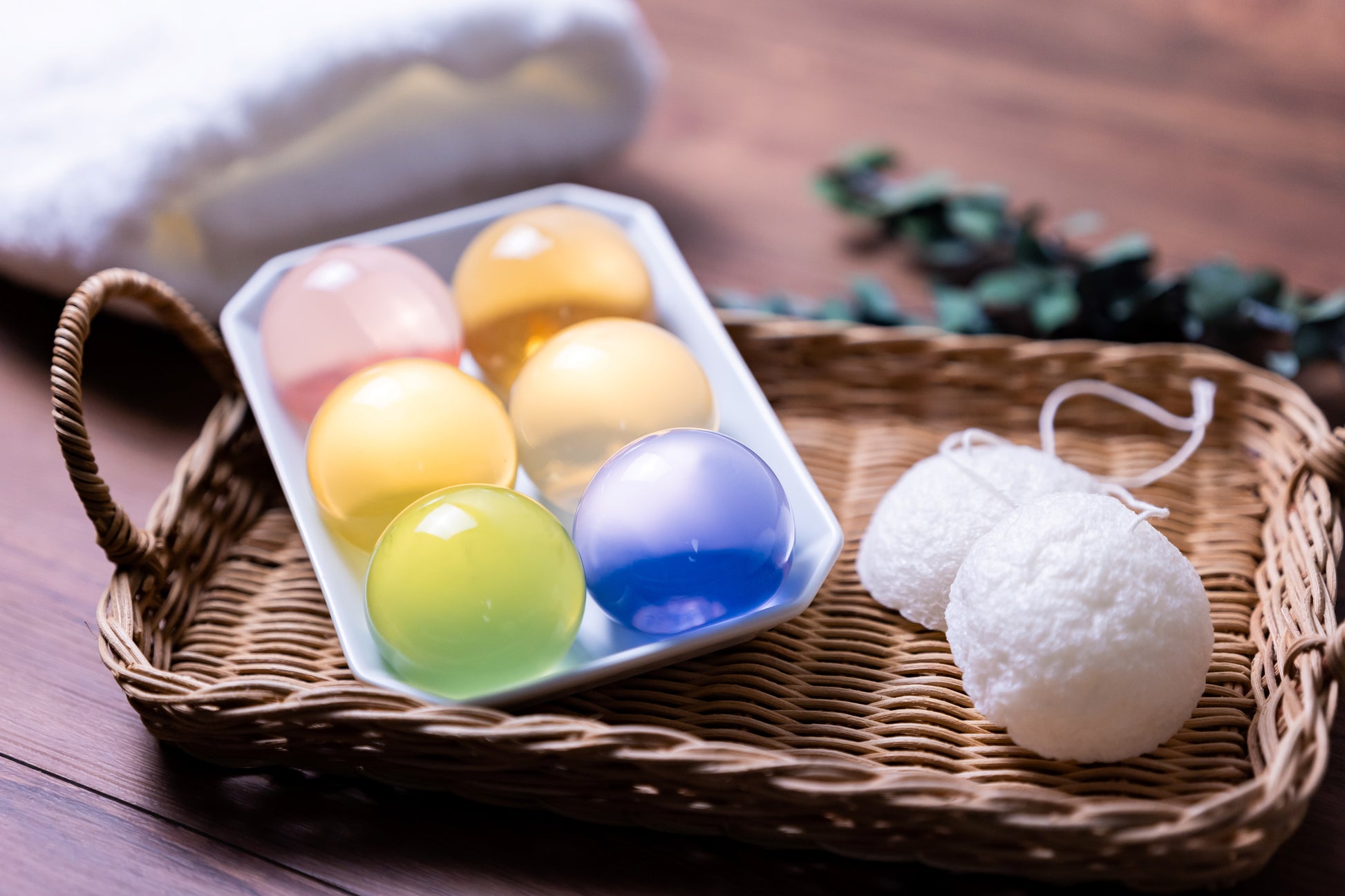 Yokihada soap was developed in the pursuit of health and beauty by focusing on the herbal ingredients in Gero Gypsum, a traditional medicine from Gero Onsen (Gero Hot Springs). The soap is a little bit cute, and can be taken out by breaking a balloon, just like tama-yokan (bean jelly). The jelly-like soap gently cleanses the face and body. Free of preservatives, synthetic dyes, and synthetic fragrances, it is a safe and soothing soap. The uniquely Japanese colors are derived from Chinese herbal medicine. The subtle fragrance of lavender, yuzu, and other essential oils were carefully selected by a pharmacist. The soap comes in a special box. (The box can be used as a container for small items after opening, and the tray can be used as a soap holder.) For face wash and whole body. For gift-giving. For gifts. For yourself. Lavender (purple), geranium (peach), tea tree (green), yuzu (yellow), ylang-ylang (clear)